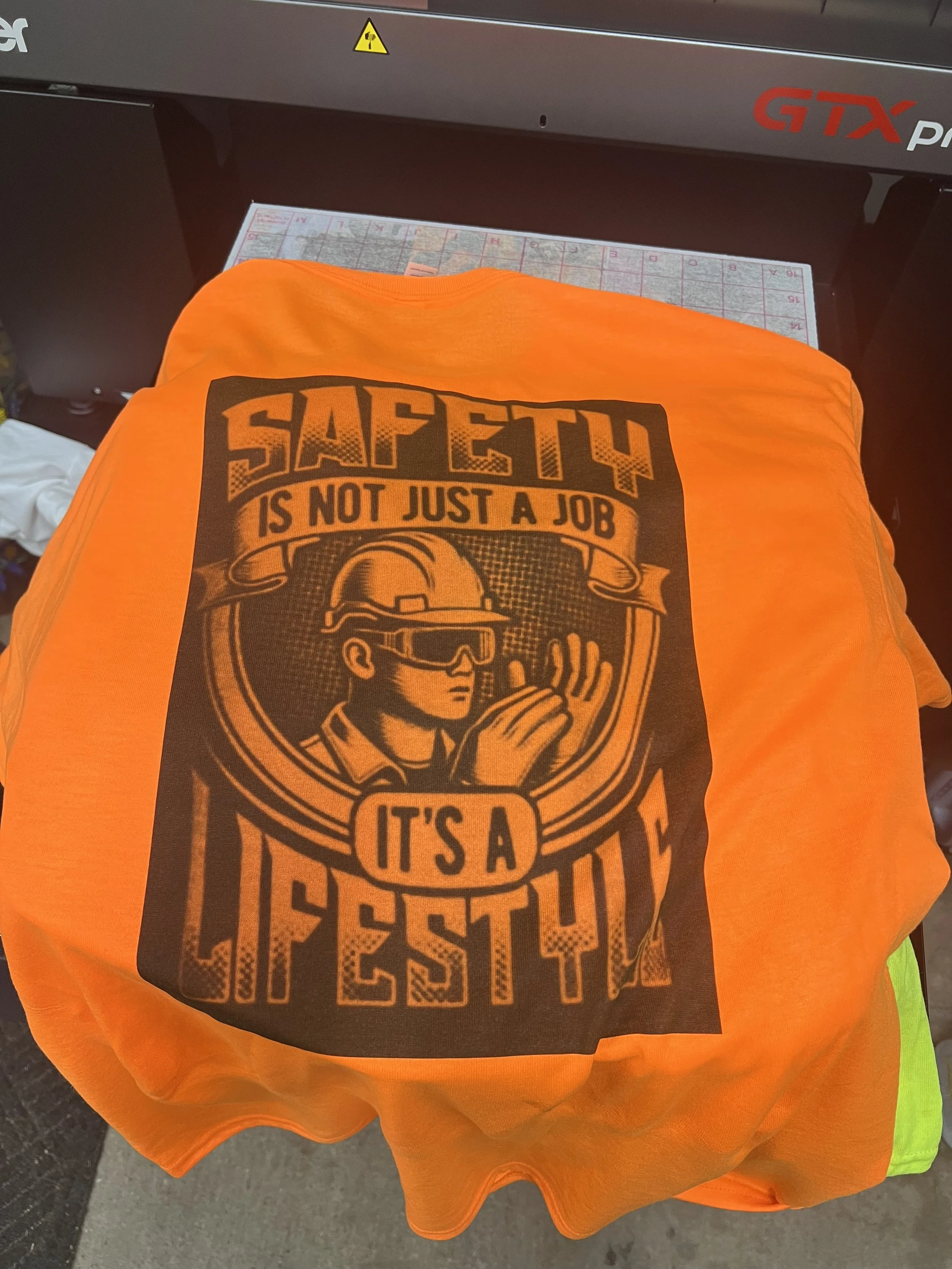 Custom Safety Messages: Enhance workplace safety with clear, visible messages printed on shirts. Perfect for keeping your team informed and secure.